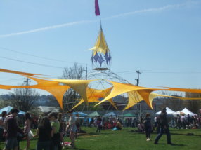 I love Portland. As in most cities accross the US, Portland had its celebration of all good things for the earth, found locally, built sustainably, with respect to the earth and all its inhabitants, in music, artful displays, bringing together young and old, two legged, lots of four legged…what a party! And when time came to eat, we found a vegan hot dog stand! Pretty cool or what? Most of the other choices were mostly vegetarian (there was one stand barbecuing animal parts). We had three options: Vegan kielbassa, beer brat and regular hot dog, all made by Tofurky! With all the toppings of course. And on the way out, a few hours later, a vegan bake sale that raised money for several animal sanctuaries. Usually, we try to cut down on sweets, but given the cause, We had to pitch in, someone has to do it! It is my story and I am sticking to it.